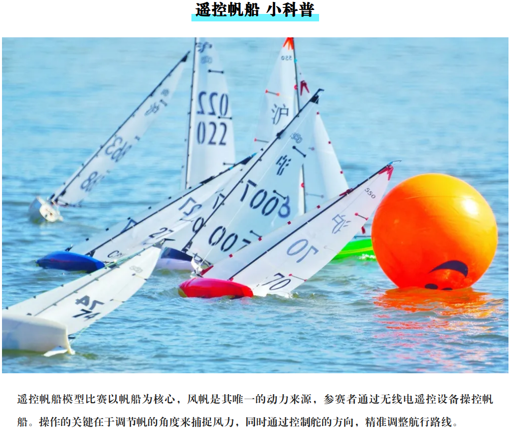 比赛通常设定指定航线,选手需操控帆船绕过标志浮标,按照规定方向航行并回到终点。每轮比赛都考验选手对风力的观察、航线的规划以及精准的操控技巧。